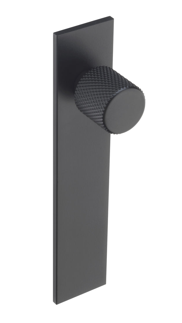 Knurled Circular Knob, 20mm, Matt Black with Rectangular, 130x26mm Backplate