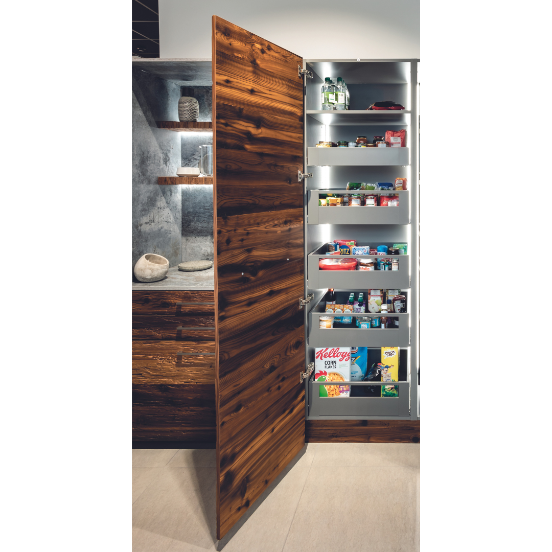 This Blum SPACE TOWER LEGRABOX Drawer Box Kit in Orion Grey is designed for 450mm kitchen drawers, offering organized and smooth storage. Featuring BLUMOTION technology and a 40kg capacity, it ensures durable, quiet, and effortless drawer operation.