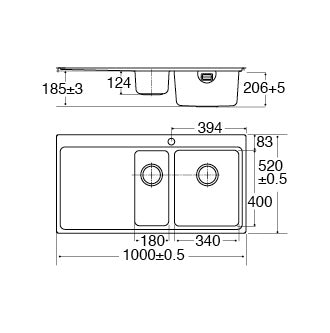 Sink - SUBLINE 340/160-U, SILGRANIT, White